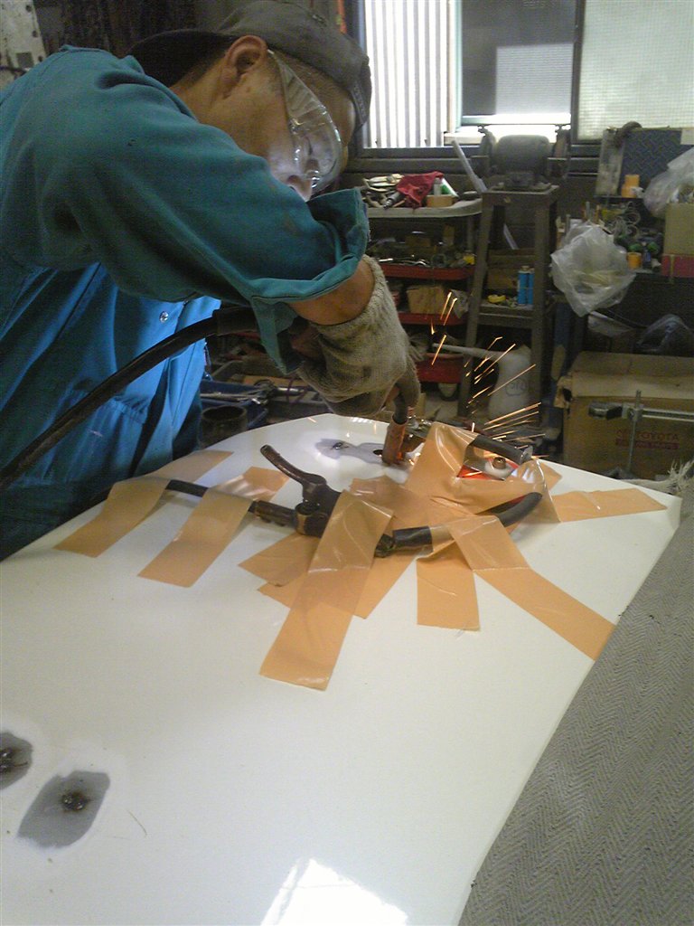 今回のはトランクの、純正スポイラーを取り外した後の穴埋め作業です。