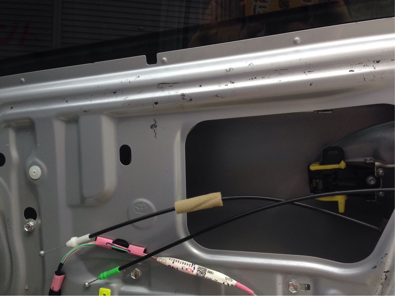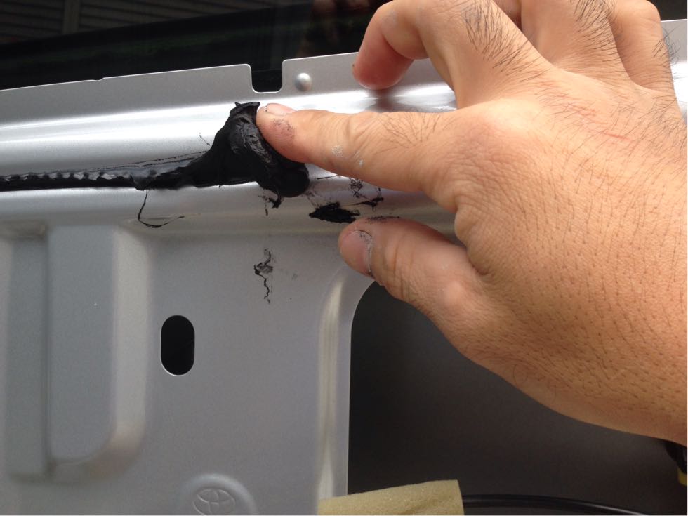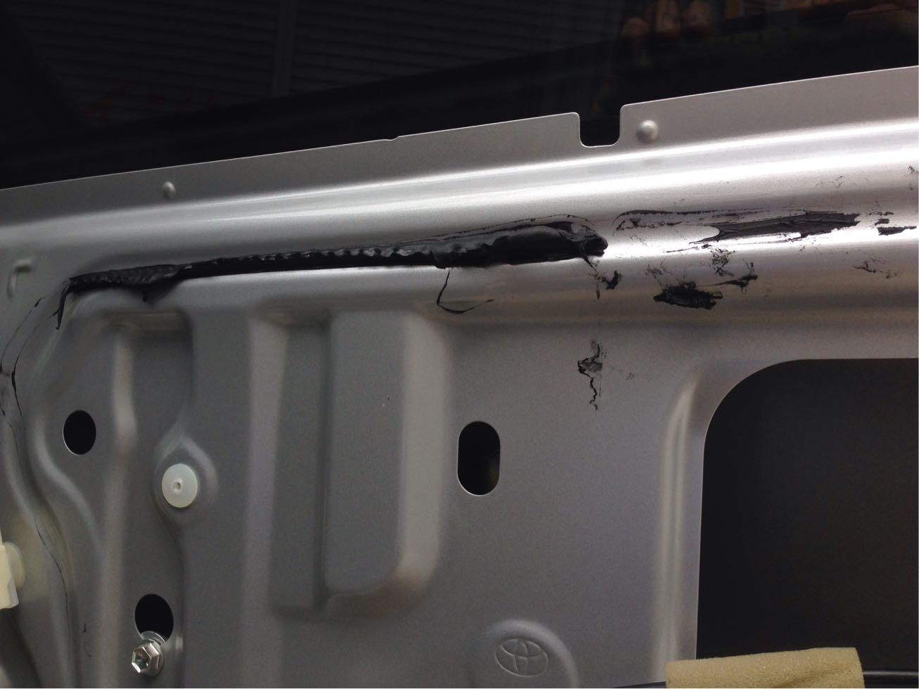 ドア側も濡らしながら、ブチルゴムを引っ張り、ブチル同士をくっ付ける感じで引っ張るだけで